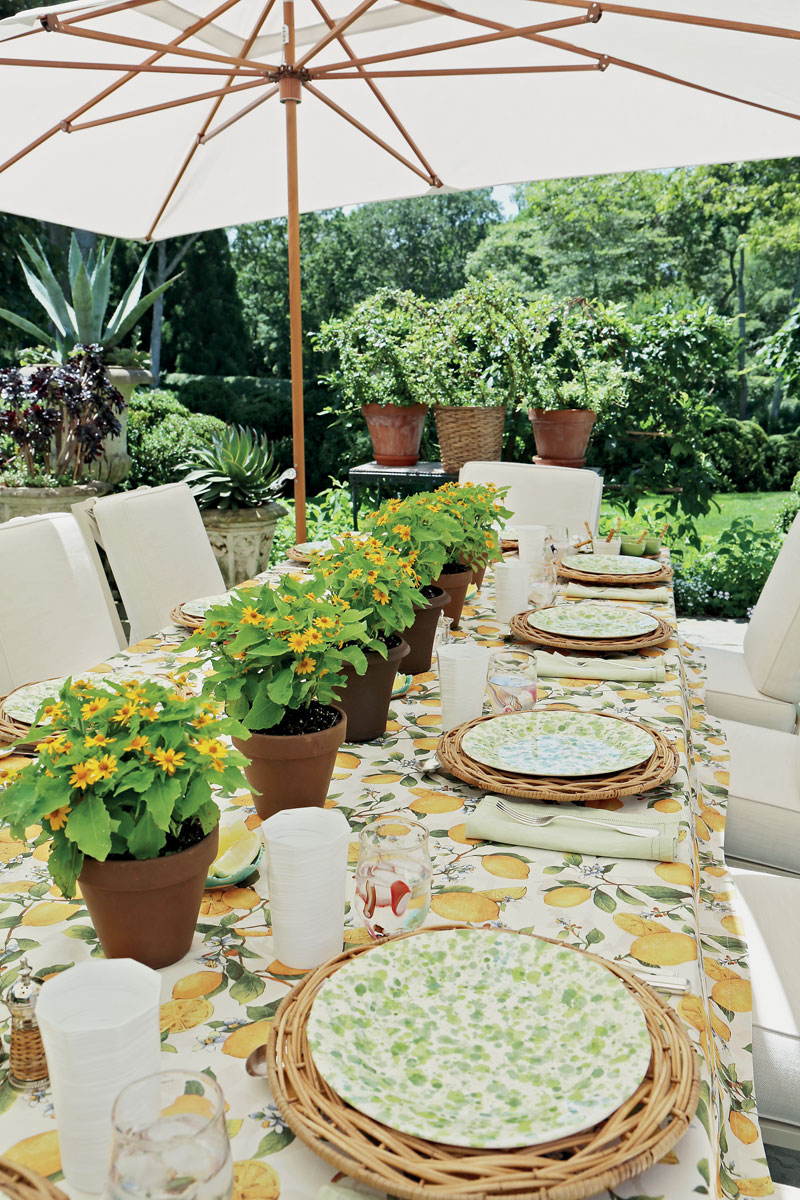 Making every day an occasion sounds like a heap of work – BUT, it is not. (Above: Annuals from the Garden Center line the center of the table)